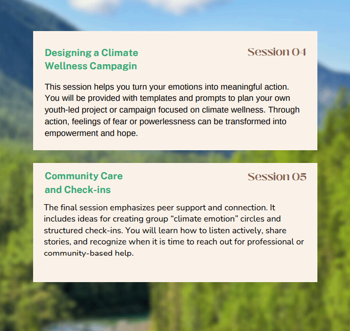 ● Short explainer videos on climate anxiety, coping strategies, and youth resilience